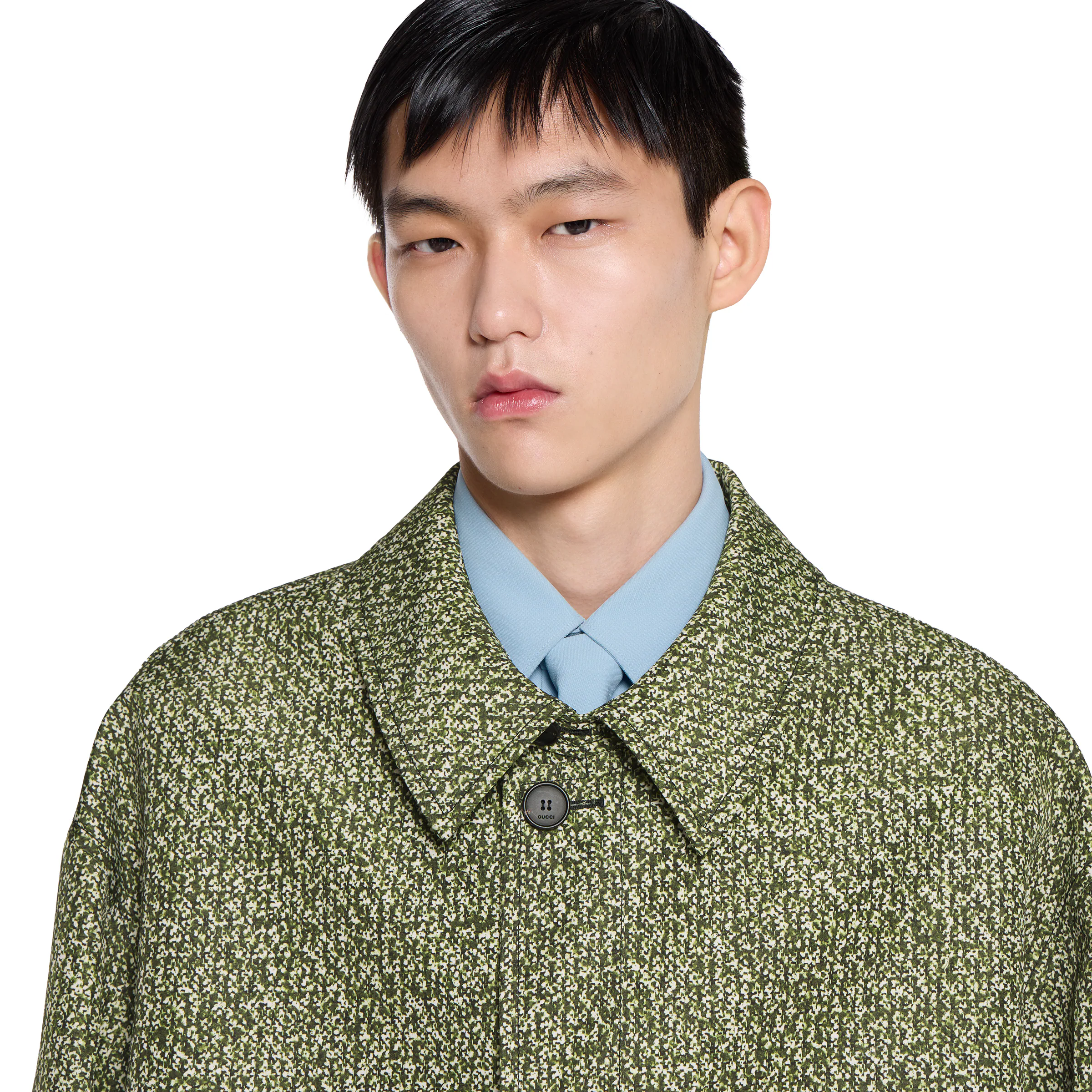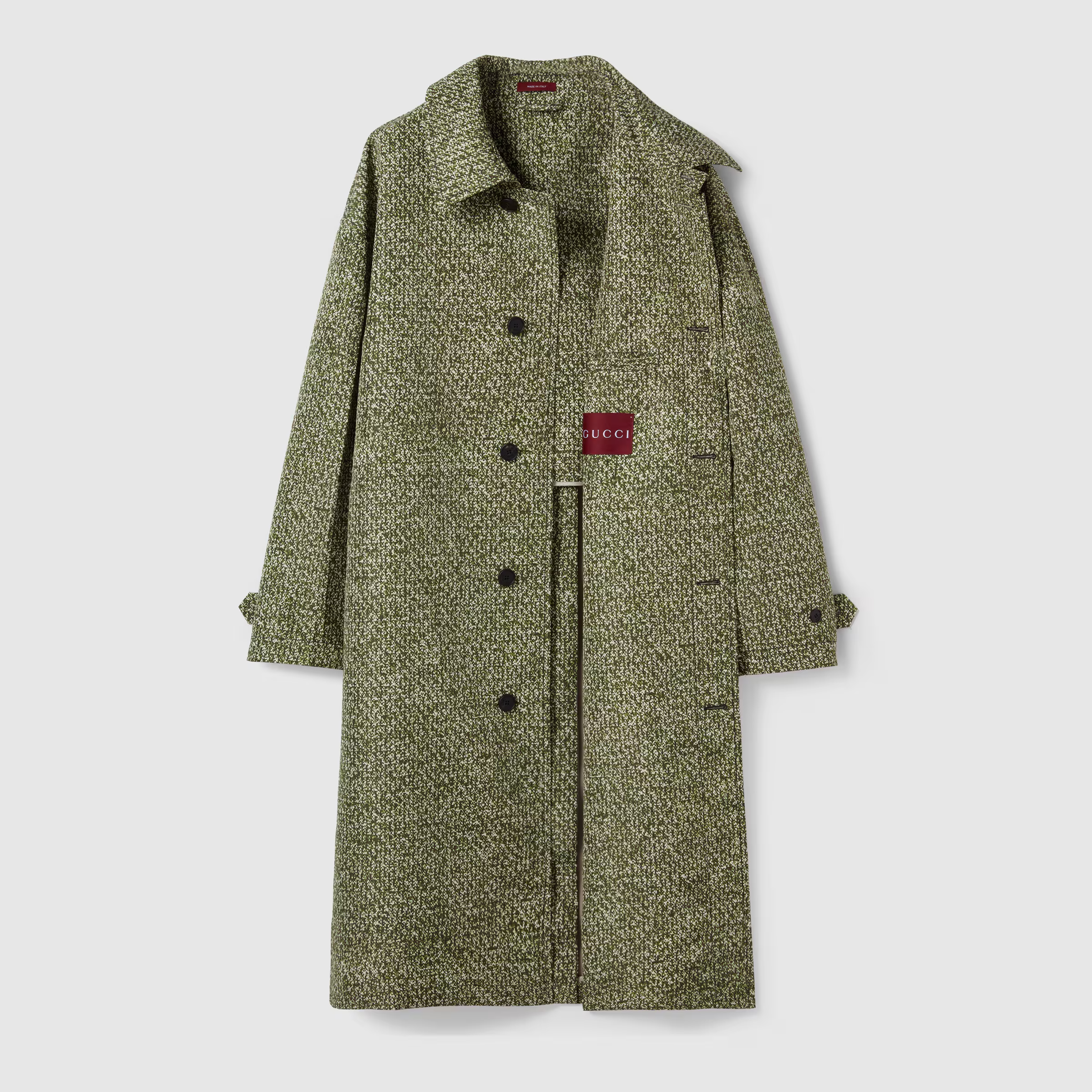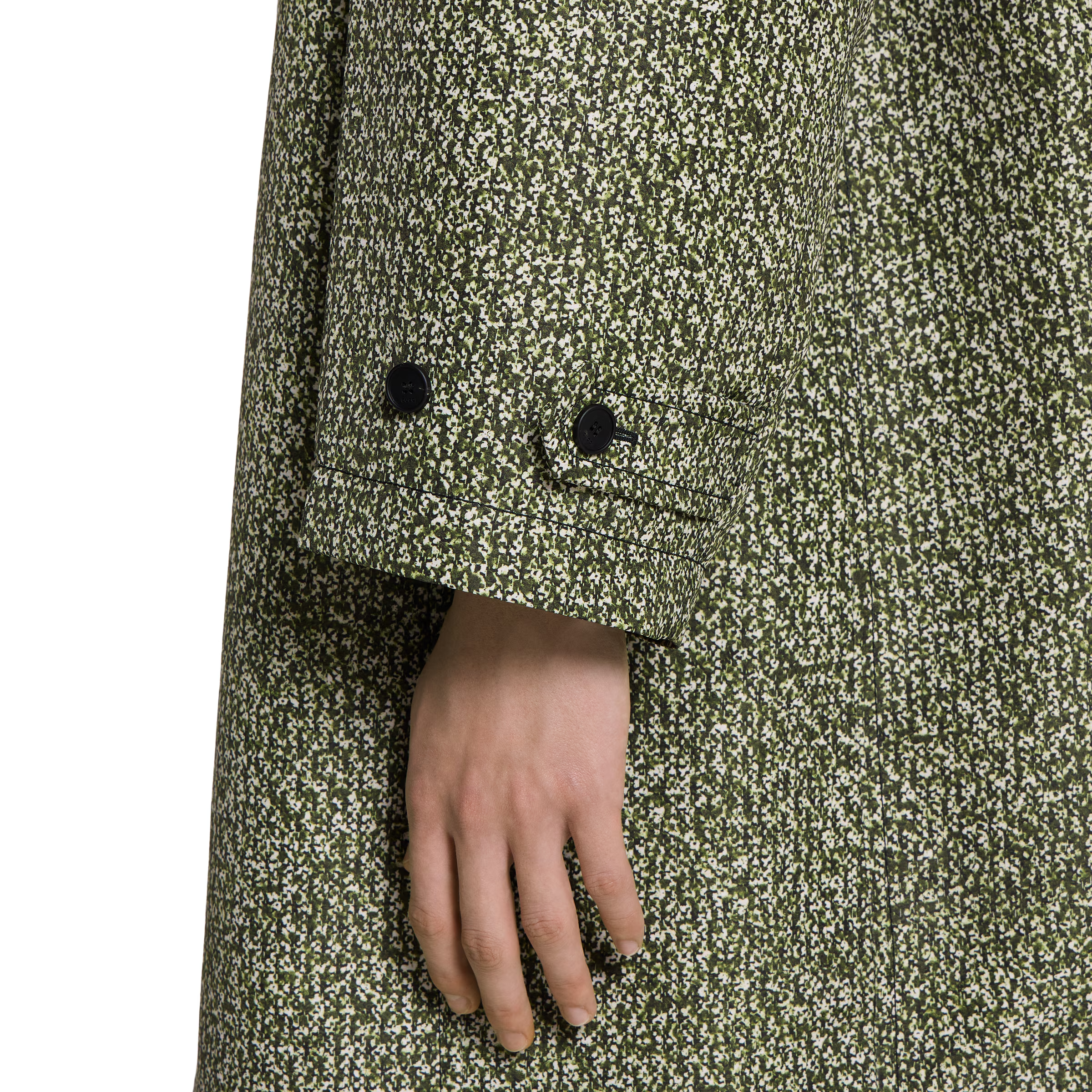 Bonded poplin coat with bouclé print